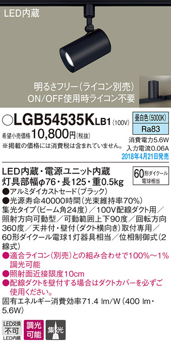 Panasonic ¥¹¥Ý¥Ã¥È¥é¥¤¥È LGB54535KLB1