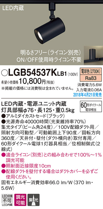 Panasonic ¥¹¥Ý¥Ã¥È¥é¥¤¥È LGB54537KLB1