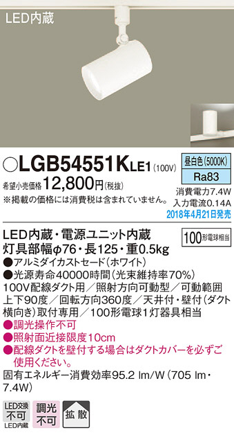 Panasonic ¥¹¥Ý¥Ã¥È¥é¥¤¥È LGB54551KLE1