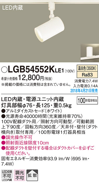 Panasonic ¥¹¥Ý¥Ã¥È¥é¥¤¥È LGB54552KLE1