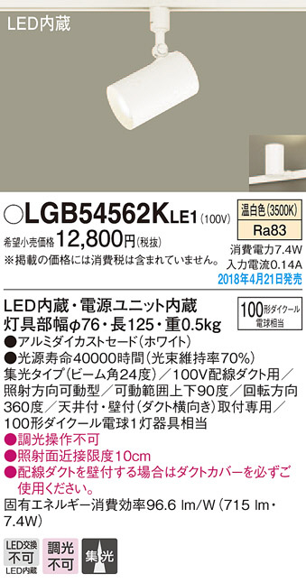 Panasonic ¥¹¥Ý¥Ã¥È¥é¥¤¥È LGB54562KLE1