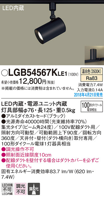 Panasonic ¥¹¥Ý¥Ã¥È¥é¥¤¥È LGB54567KLE1
