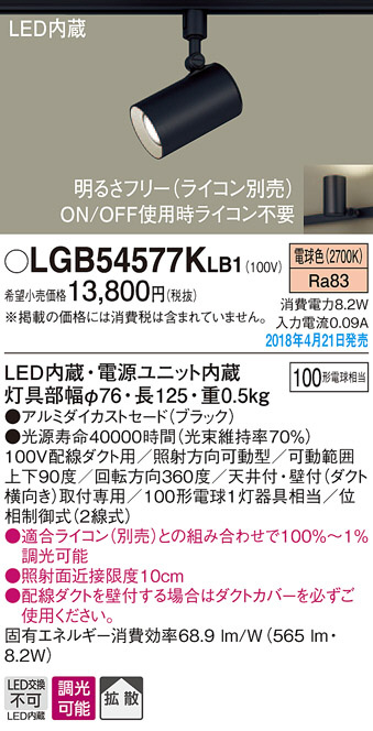 Panasonic ¥¹¥Ý¥Ã¥È¥é¥¤¥È LGB54577KLB1