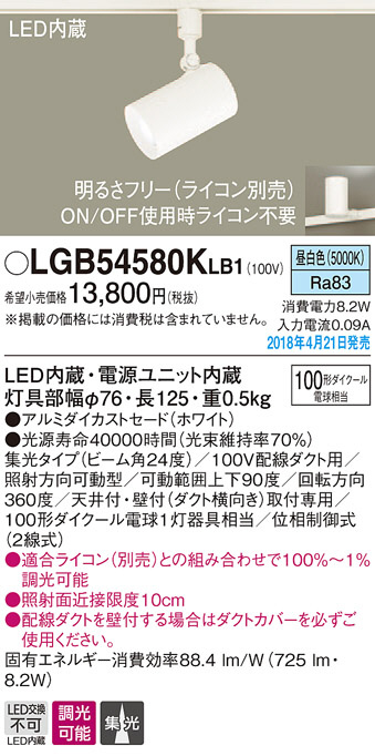 Panasonic ¥¹¥Ý¥Ã¥È¥é¥¤¥È LGB54580KLB1