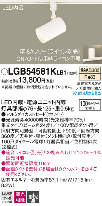 Panasonic ¥¹¥Ý¥Ã¥È¥é¥¤¥È LGB54581KLB1