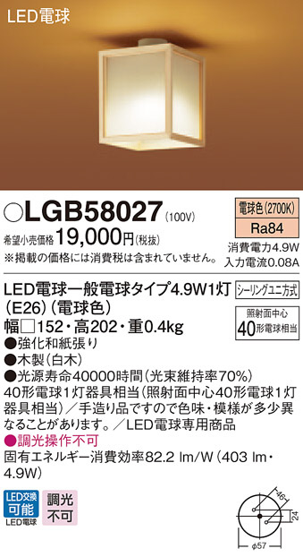 Panasonic ¥·¡¼¥ê¥ó¥°¥é¥¤¥È LGB58027