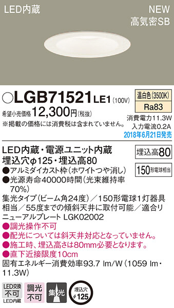 Panasonic ¥À¥¦¥ó¥é¥¤¥È LGB71521LE1