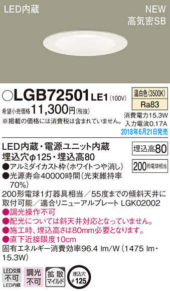 Panasonic ¥À¥¦¥ó¥é¥¤¥È LGB72501LE1
