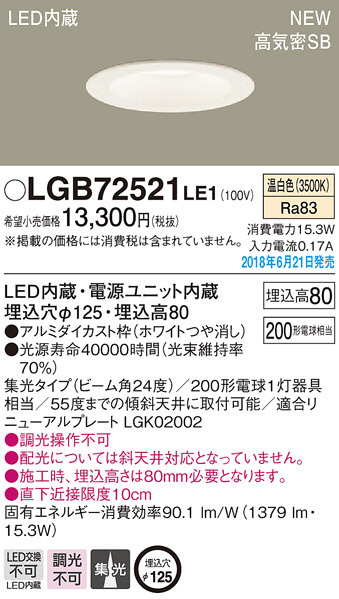 Panasonic ¥À¥¦¥ó¥é¥¤¥È LGB72521LE1