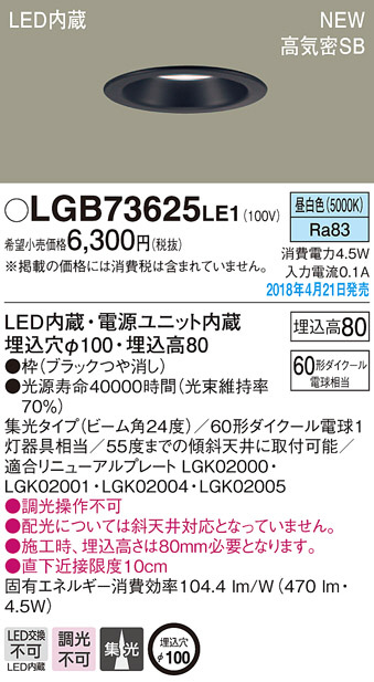 Panasonic ¥À¥¦¥ó¥é¥¤¥È LGB73625LE1