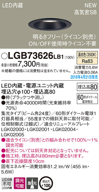 Panasonic ¥À¥¦¥ó¥é¥¤¥È LGB73626LB1