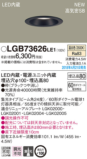 Panasonic ¥À¥¦¥ó¥é¥¤¥È LGB73626LE1