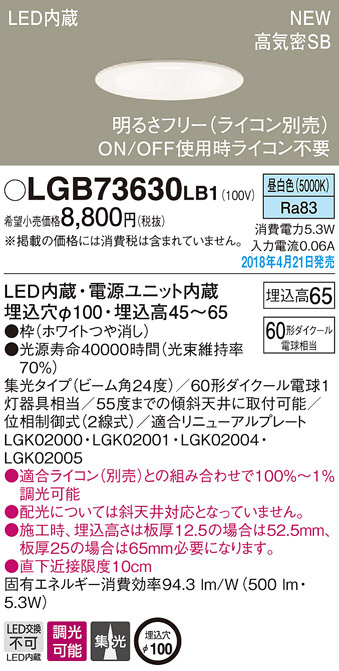 Panasonic ¥À¥¦¥ó¥é¥¤¥È LGB73630LB1