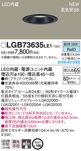 Panasonic ¥À¥¦¥ó¥é¥¤¥È LGB73635LE1
