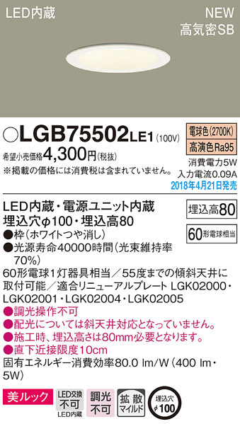Panasonic ¥À¥¦¥ó¥é¥¤¥È LGB75502LE1