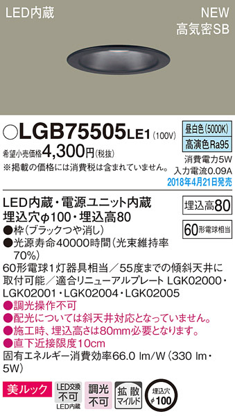 Panasonic ¥À¥¦¥ó¥é¥¤¥È LGB75505LE1