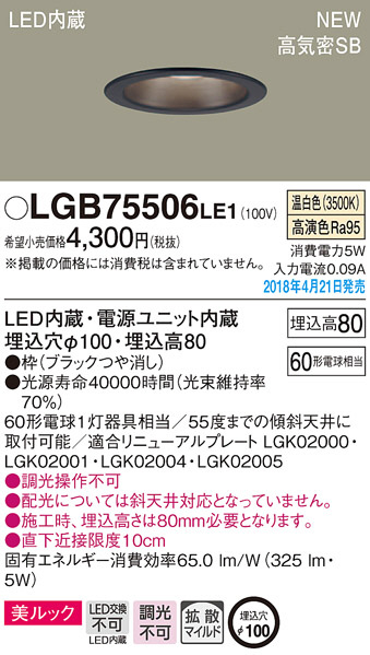 Panasonic ¥À¥¦¥ó¥é¥¤¥È LGB75506LE1