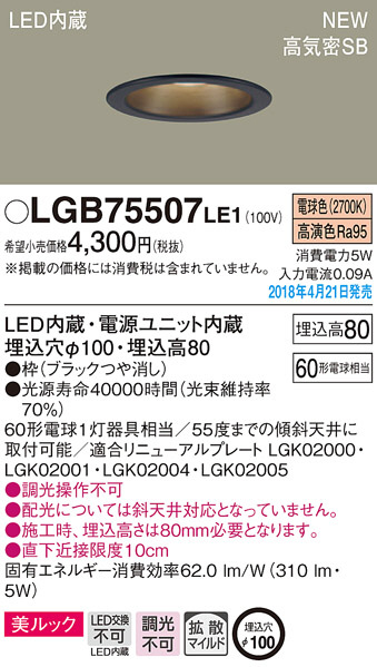 Panasonic ¥À¥¦¥ó¥é¥¤¥È LGB75507LE1