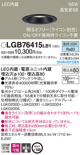 Panasonic ¥À¥¦¥ó¥é¥¤¥È LGB76415LB1