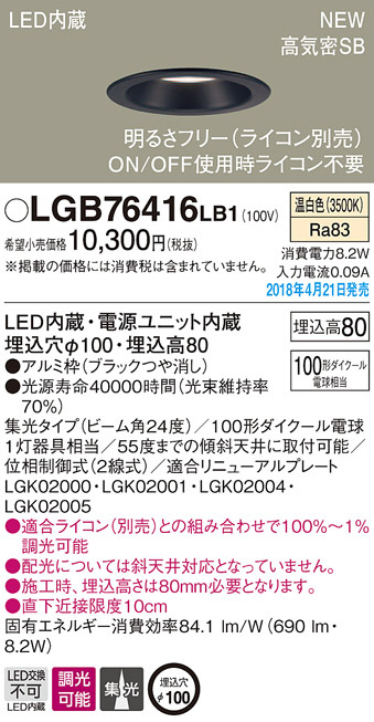 Panasonic ¥À¥¦¥ó¥é¥¤¥È LGB76416LB1