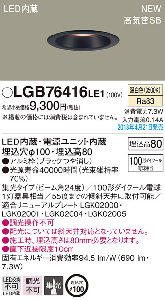 Panasonic ¥À¥¦¥ó¥é¥¤¥È LGB76416LE1