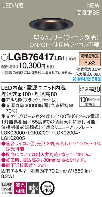 Panasonic ¥À¥¦¥ó¥é¥¤¥È LGB76417LB1
