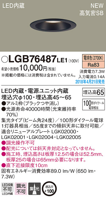 Panasonic ¥À¥¦¥ó¥é¥¤¥È LGB76487LE1