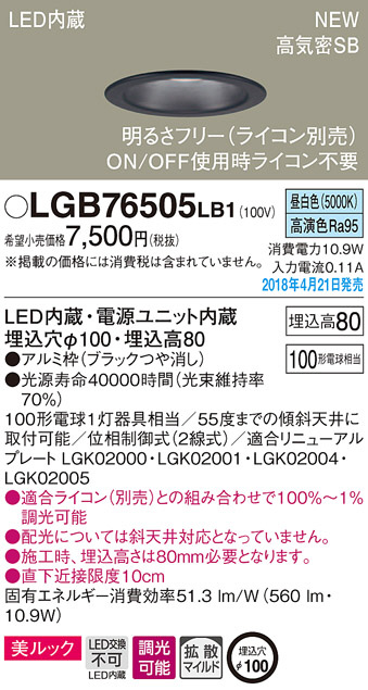 Panasonic ¥À¥¦¥ó¥é¥¤¥È LGB76505LB1