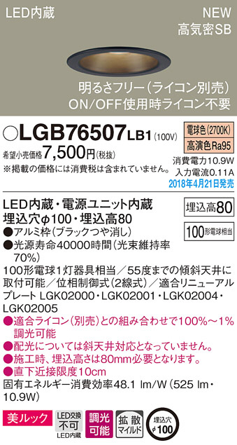 Panasonic ¥À¥¦¥ó¥é¥¤¥È LGB76507LB1