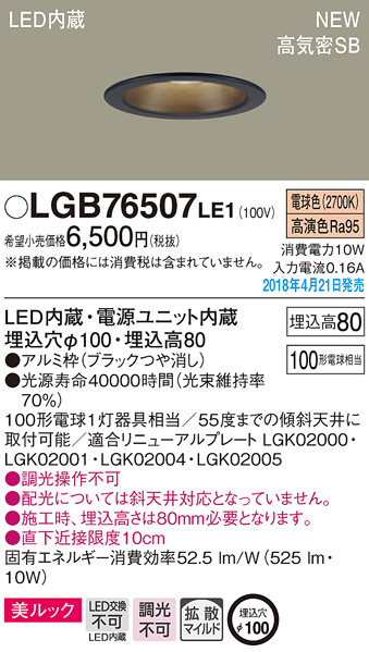 Panasonic ¥À¥¦¥ó¥é¥¤¥È LGB76507LE1