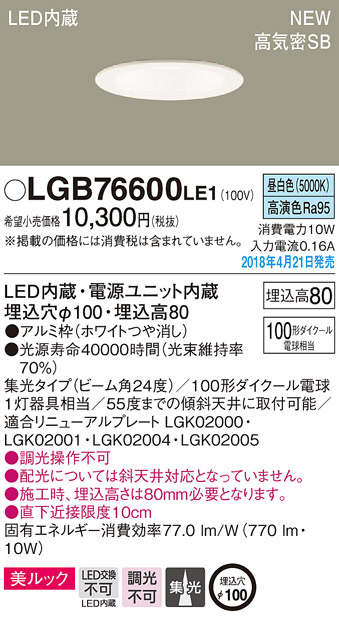Panasonic ¥À¥¦¥ó¥é¥¤¥È LGB76600LE1