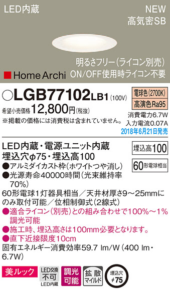 Panasonic ¥À¥¦¥ó¥é¥¤¥È LGB77102LB1