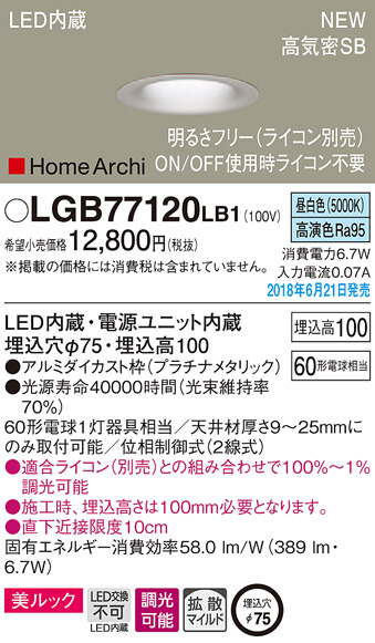 Panasonic ¥À¥¦¥ó¥é¥¤¥È LGB77120LB1