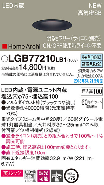 Panasonic ¥À¥¦¥ó¥é¥¤¥È LGB77210LB1