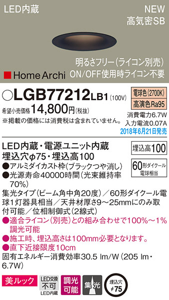 Panasonic ¥À¥¦¥ó¥é¥¤¥È LGB77212LB1