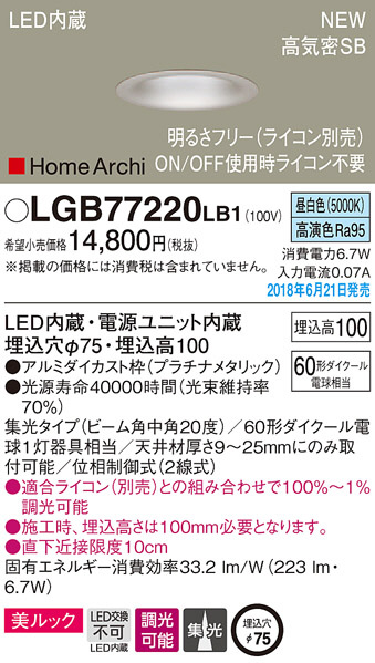 Panasonic ¥À¥¦¥ó¥é¥¤¥È LGB77220LB1