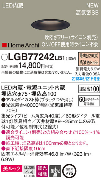 Panasonic ¥À¥¦¥ó¥é¥¤¥È LGB77242LB1