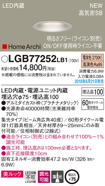 Panasonic ¥À¥¦¥ó¥é¥¤¥È LGB77252LB1