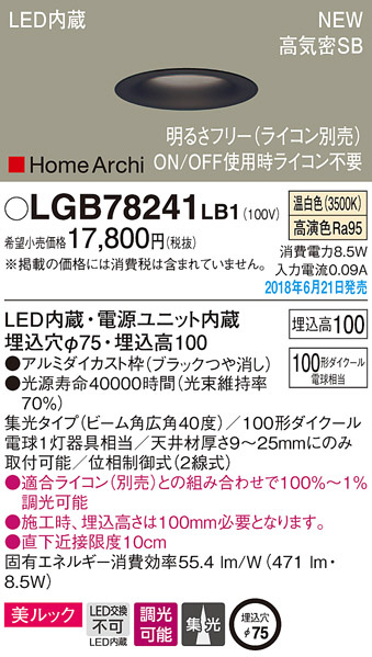 Panasonic ¥À¥¦¥ó¥é¥¤¥È LGB78241LB1