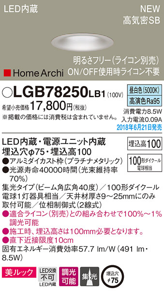 Panasonic ¥À¥¦¥ó¥é¥¤¥È LGB78250LB1