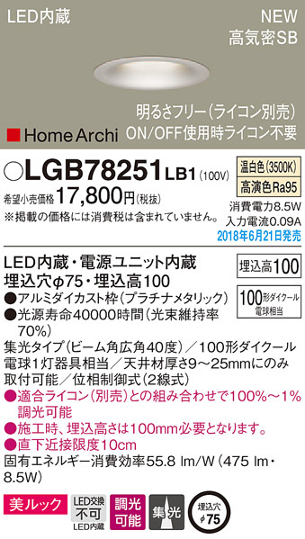 Panasonic ¥À¥¦¥ó¥é¥¤¥È LGB78251LB1