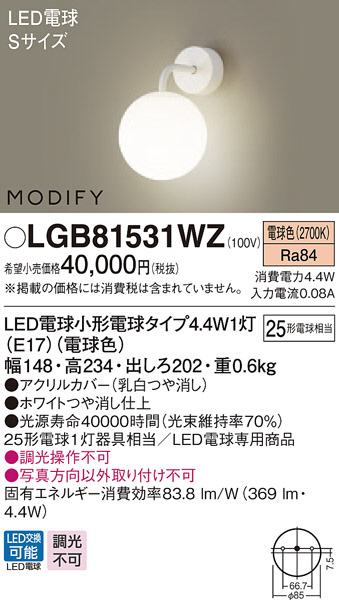 Panasonic ¥Ö¥é¥±¥Ã¥È LGB81531WZ