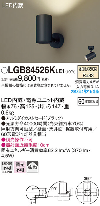 Panasonic ¥¹¥Ý¥Ã¥È¥é¥¤¥È LGB84526KLE1