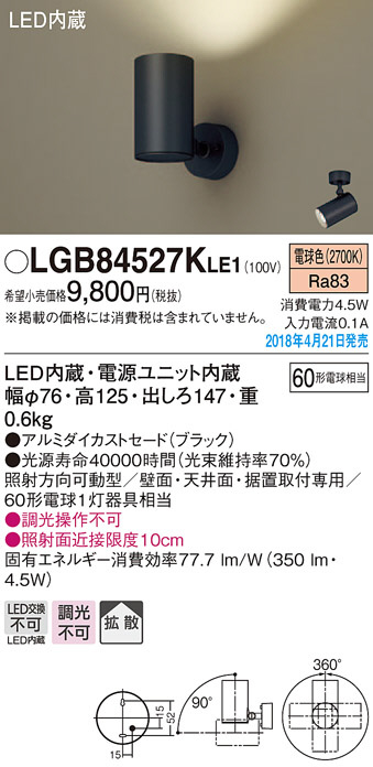Panasonic ¥¹¥Ý¥Ã¥È¥é¥¤¥È LGB84527KLE1