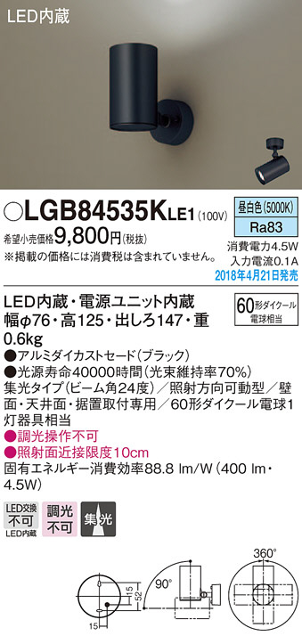 Panasonic ¥¹¥Ý¥Ã¥È¥é¥¤¥È LGB84535KLE1