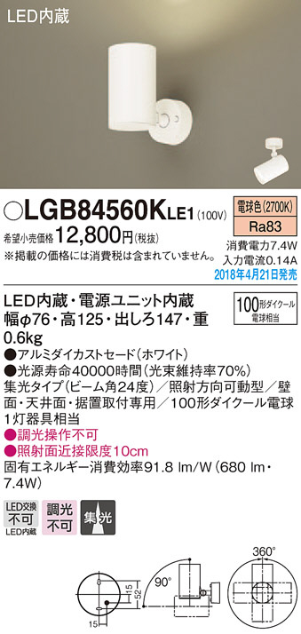 Panasonic ¥¹¥Ý¥Ã¥È¥é¥¤¥È LGB84560KLE1