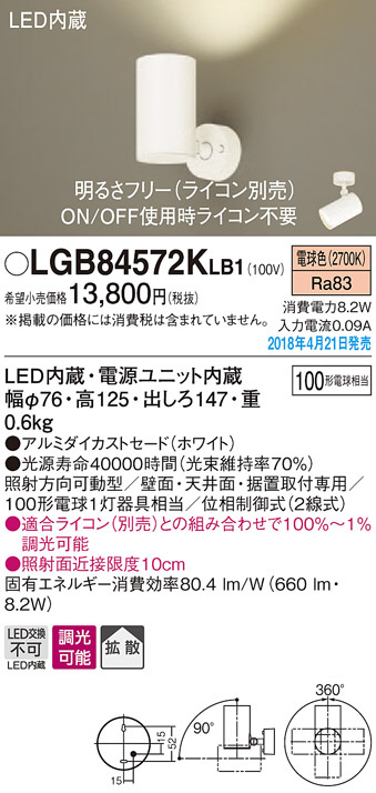 Panasonic ¥¹¥Ý¥Ã¥È¥é¥¤¥È LGB84572KLB1