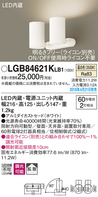 Panasonic ¥¹¥Ý¥Ã¥È¥é¥¤¥È LGB84621KLB1