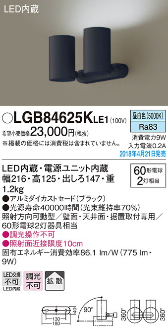 Panasonic ¥¹¥Ý¥Ã¥È¥é¥¤¥È LGB84625KLE1