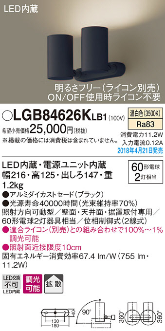 Panasonic ¥¹¥Ý¥Ã¥È¥é¥¤¥È LGB84626KLB1